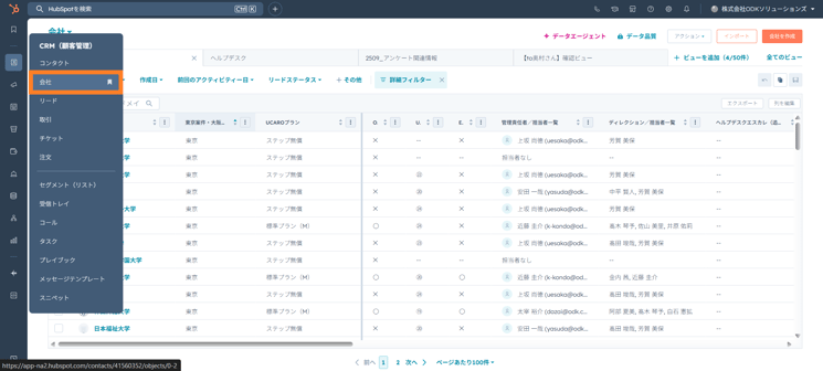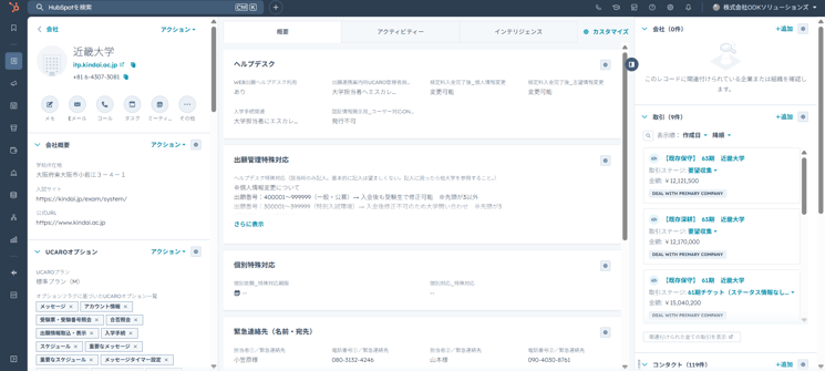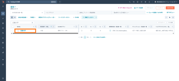 左ウィンドウ:開いている情報(この場合は近畿大学)に紐づく情報